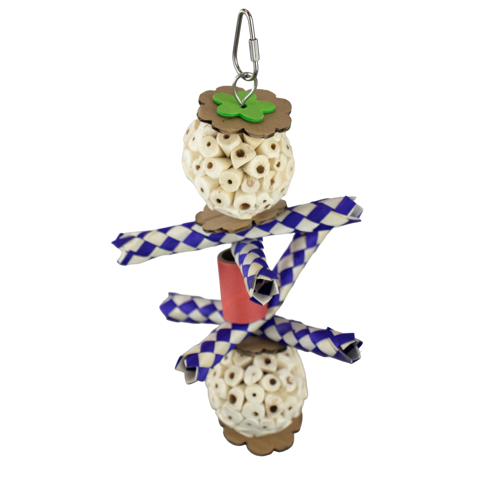 Twirly Whirly Sola Bird Toy from A&E Cage Company combines soft sola material with a dynamic spiral design to inspire natural foraging and shredding in small to medium birds. Measuring 11" x 5.5" and weighing just 0.09 lb, this airy toy encourages frequent interaction that conditions the beak and promotes daily cage activity. The gentle sola construction paired with wood, paper, plastic, palm, and metal components creates varied textures that sustain engagement without overwhelming delicate beaks. Easy to position in most cage setups, it works well as a rotating enrichment piece to maintain novelty and prevent habituation. Lab-certified non-toxic materials ensure safety, while the lightweight design supports independent play and natural instincts.