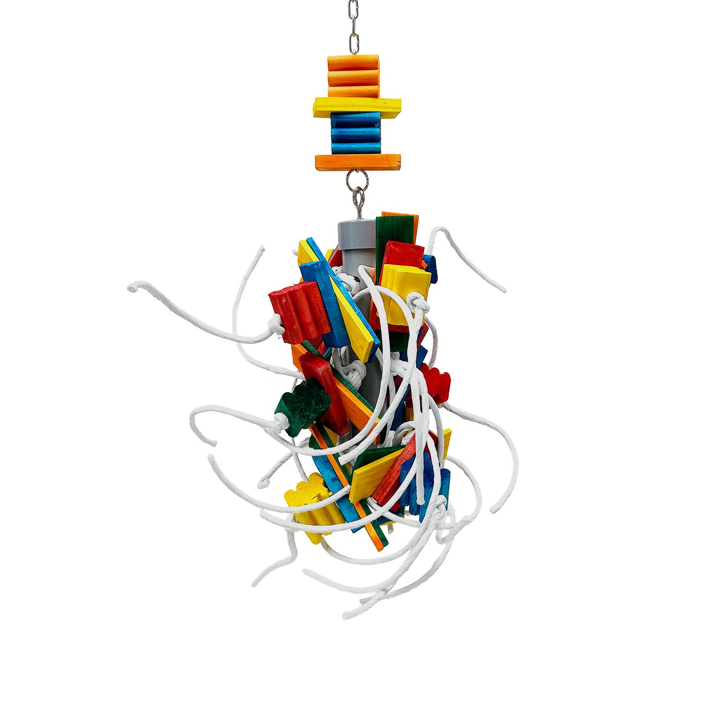 This large-format toy combines natural materials with engineered durability. The Picaya features a reinforced PVC core that resists aggressive chewing, wrapped in soft wood and kraft paper cord to satisfy your bird's natural destructive instincts. At 26" x 12", it provides substantial enrichment for medium to large parrots. The layered construction—soft wood exterior with a tough inner tube—extends toy lifespan while delivering the satisfying textures birds crave. Handcrafted in Canada, this toy balances entertainment value with proven longevity for serious bird owners.